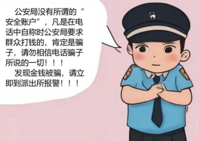警方提示:公检法机关没有所谓的“安全账户”!凡是电话中自称公检法等国家机关工作人员要求把资金转到指定账户的,或要求提供银行账号、密码、验证码的,都是诈骗。