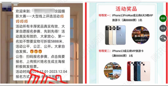 这类活动诈骗分子会假借以赞助的形式找一些学生组织、校园墙,组织诸如一些“最美新生”“摄影比赛”的投票活动,殊不知都是钻石投票(即花钱投票),票数却是你花钱就可以修改的。