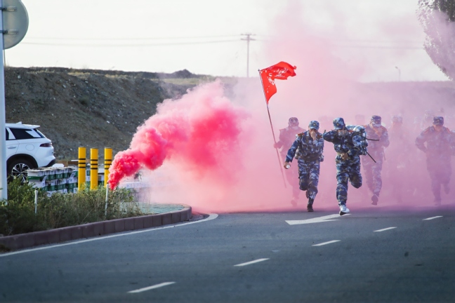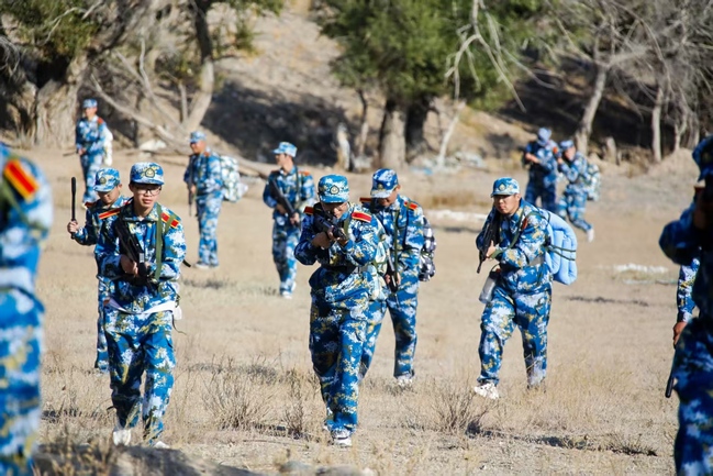 交替警戒:背枪、持棍、眼神坚毅,秒变“战士”;信号传达:无声手势+旗语,默契拉满;隐蔽伪装:迷彩网一盖,草丛里“隐身”技能;负重急行:咬牙跟上,“坚持住”就是最燃的信念。