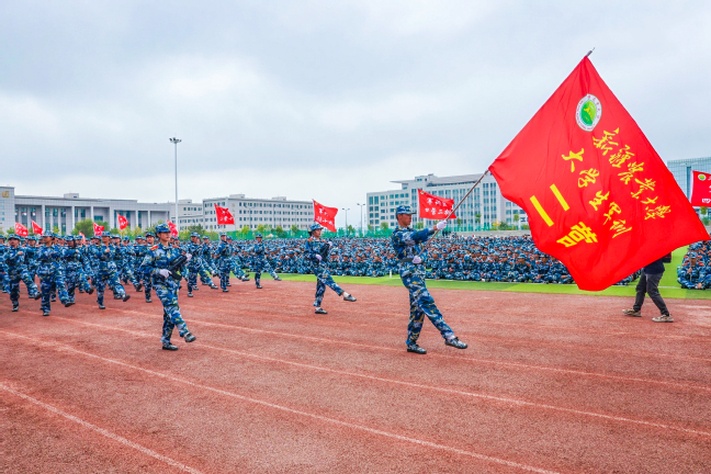 分列式上,新生方阵身着作训服,迈着铿锵步伐依次通过主席台,整齐划一的队列,2025级新生用行动证明:“我们,练到位了!”