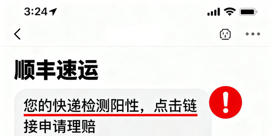 “您的快递检测阳性,点击链接申请理赔”,这类短信借着物流高峰趁虚而入。
