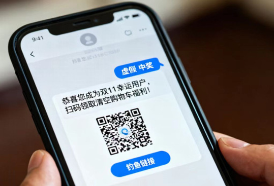 短信/朋友圈突然弹出“双十一”幸运用户,扫码领取1888元购物基金”,或“邀请3人助力,清空购物车”,这些文字是不是很眼熟?诈骗分子通过伪基站伪装官方口吻,诱导用户点击钓鱼链接,点击后跳转的页面要填身份证号、银行卡信息,却没收到福利,反而收到了消费扣款短信。