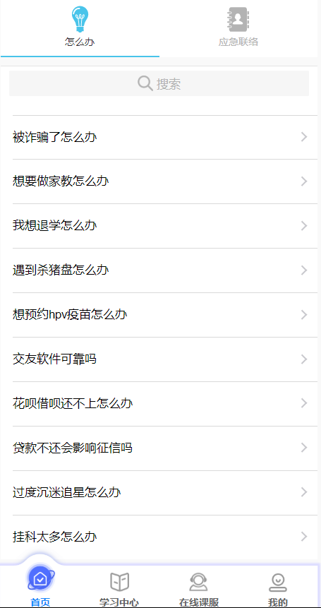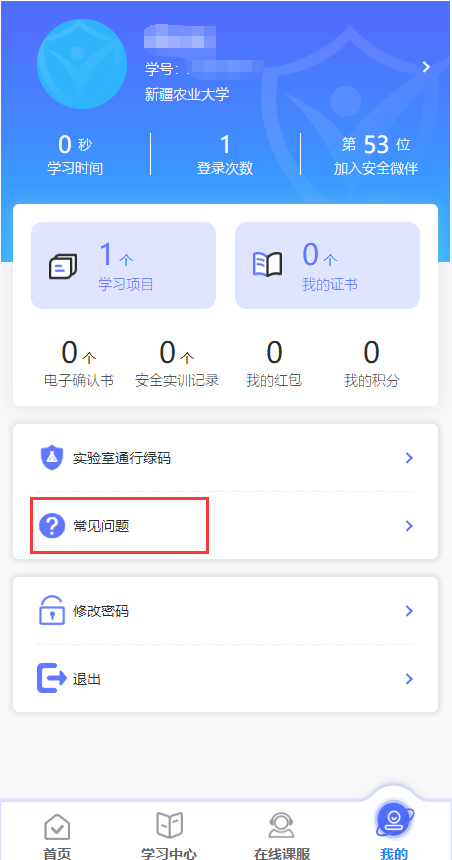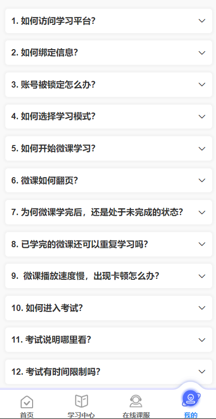 【我的】→【常见问题】,包括课服热线、在线课服、常见问题汇总,汇总内容会不定期更新;